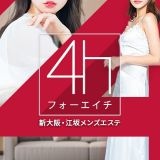 4h~フォーエイチ 大阪府 新大阪 メンズエステ 日本人 新大阪駅東口から徒歩4分、江坂駅徒歩4分とアクセス良好。