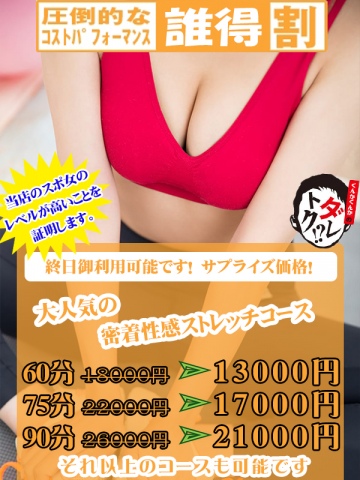 | 密着性感ストレッチ45分 | 10000円 |